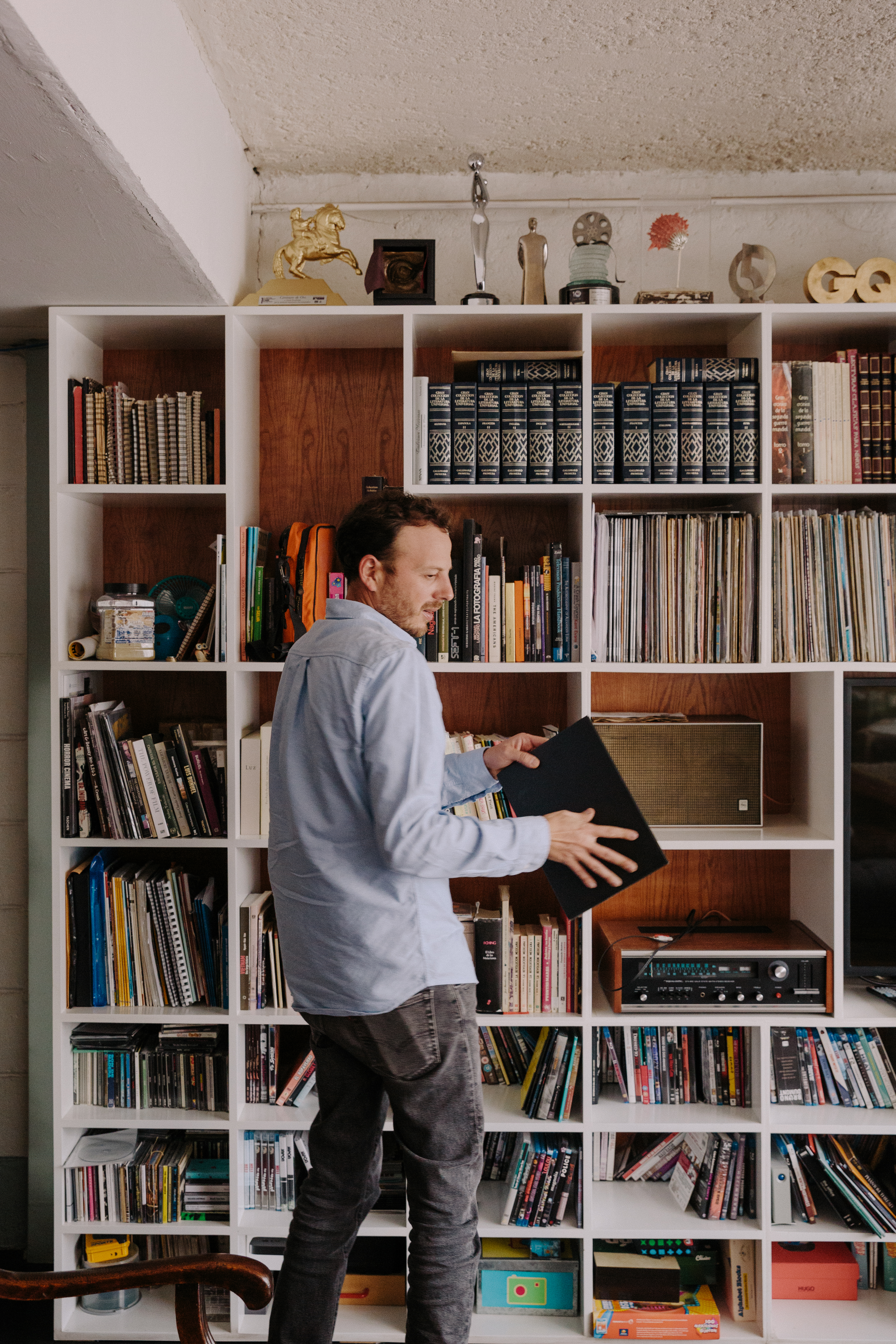 Escalantes huis in Mexico-Stad ligt op de bovenste verdieping van een appartementencomplex in een rustige straat in de wijk Cuhautemoc. Zijn boekenkast is gevuld met films en boeken over cinematografie. Een voortijdig afgekapte middelbare school is het laatste academische wat Escalante ooit nog deed, hij leerde zichzelf de kneepjes van het vak door veel te lezen en zelf aan de slag te gaan met een Super-8 camera. In de hoek van de kamer komt een plant door het raam naar binnen, als tentakels hebben de plantstrengen zich vastgehaakt en verspreid over het plafond. Een indringer die zich naar binnen heeft gewurmd, hij heeft geen moeite gedaan haar buiten te houden. We zitten op de bank, de gordijnen wapperen naar binnen, buiten horen we een verkoper spullen aanprijzen en onder ons hangt een buurvrouw uit het raam te bellen. Aan de muur hangt een schilderij van zijn vaders hand. Nog eerder dan de films die hij zag, waren de schilderijen van zijn vader een visuele leidraad voor hoe beelden een verhaal kunnen vertellen. ‘Mijn vader schilderde en ik keek toe. Vaak vroeg mijn moeder naar het verhaal achter het schilderij, de betekenis ervan. Hij wist nooit wat hij moest antwoorden. Hij gaf niet zoveel om een verklaring of hij wist het niet. Dat is me bijgebleven. Het verzinnen van een beeld en erop vertrouwen dat het op zichzelf al genoeg betekenis heeft.’